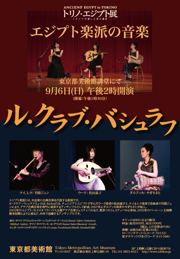 トリノ・エジプト展に因んで、エジプト楽派の音楽のコンサートがあります