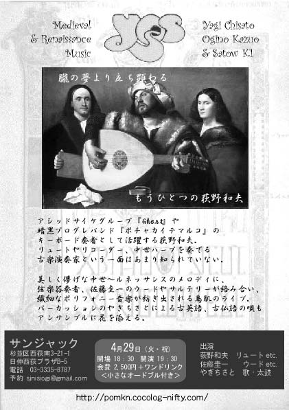 中世音楽トリオ「YOS」の関東ライヴ第二弾。
